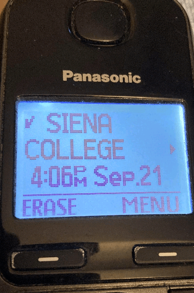When caller ID does show it displays what is in this photo. Siena College is located in Loudonville New York. It is unknown if this is legitimate or some kind of computer generated ID unrelated to the college, City Watch is working to identify the source hopefully in the coming days.