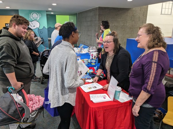 PHOTO CAPTION: Parents listen to advice during last year’s Healthy Babies Day. This year it will be held from 10-noon September 28 at Harrington Elementary School. The free event is sponsored by Albion Health Care Alliance with support from an Albion-Homer United Way grant.