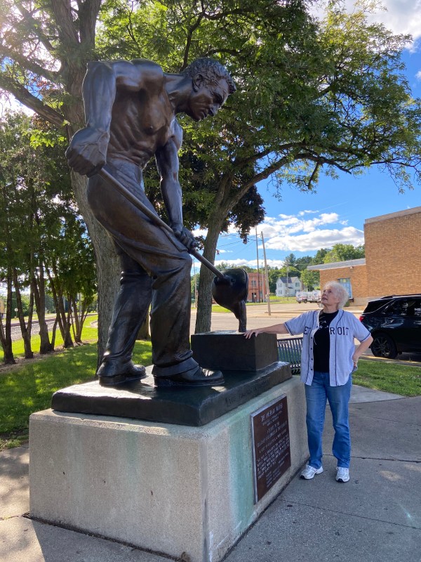 This summer, Domingo arranged for professional restorer Tad McKillop to put his skills to work on cleaning and waxing the American Molder art piece. McKillop is a member of The American Institute of Conservation and is also a sculptor with a studio in Ann Arbor. McKillop studied figurative sculpture at the University of Michigan and earned a master’s in fine arts from the New York Academy of Art. The statue, which depicts a foundry worker pouring a ladle of molten metal, was designed by Edward Chesney and cast in 1974 by Frederick Petrucci. It is a copy of a 1922 statue designed by Frederick Hibbard.